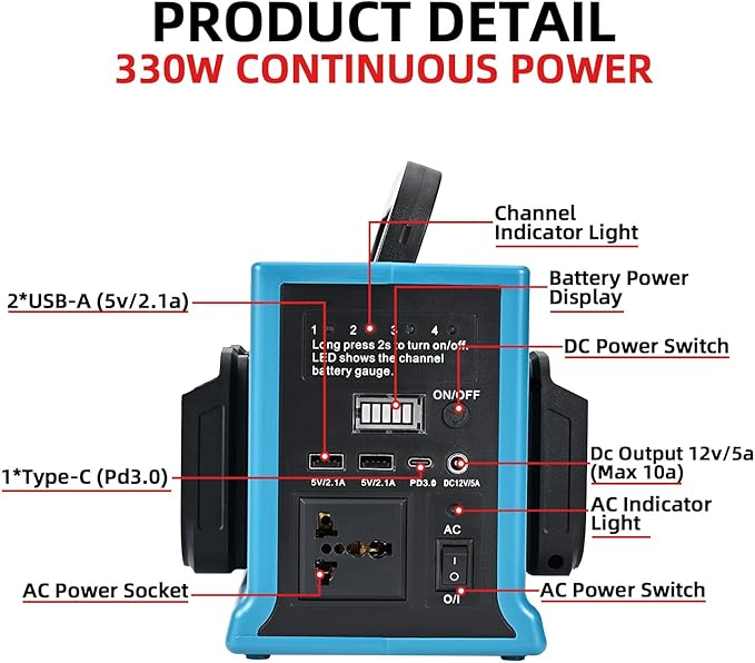 باتری شما را به یک منبع تغذیه قابل حمل برای دستگاهها تبدیل میکند. این دستگاهها میتوانند گجتها (تلفنهای هوشمند، لپتاپها، ساعتها و غیره) یا لوازم خانگی با مصرف برق تا ۳۳۰ وات باشند.